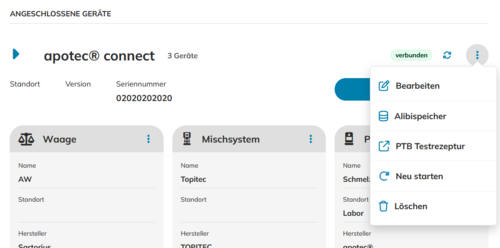 Der Gerätemanager wurde optisch angepasst. Außerdem finden Sie wichtige Funktionen (wie den Alibispeicher) nun im Menü rechts.