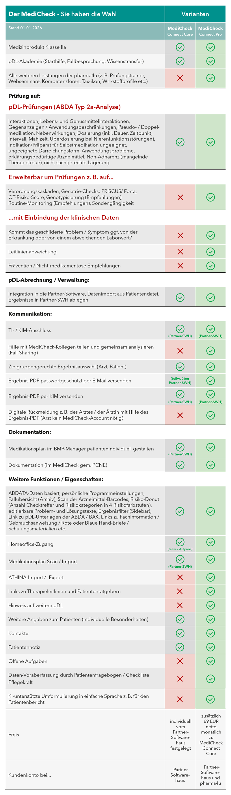 Ab sofort bietet pharma4u Kunden, die den WaWi-MediCheck nutzen ein Upgrade an: MediCheck Connect Pro bietet im Vergleich zur Standardversion MediCheck Connect Core einen größeren Checkumfang inklusive erweiterter Nutzung der klinischen Daten, zusätzliche Datenimport / -export-Funktionen z. B. für ATHINA und viele Kommunikationsfunktionen für den Dialog mit dem Arzt / der Ärztin oder anderen Kolleg*innen.