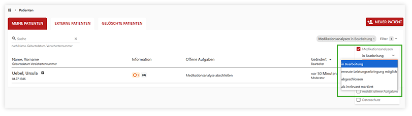 Erweiterung der Filtermöglichkeiten in der Patientenübersicht