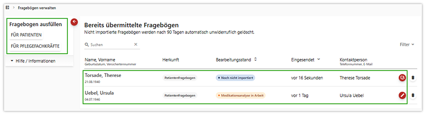 - Erweiterung des Patientenfragebogens bzw. der Checkliste für Pflegefachkräfte um die Kontaktdaten des Patienten bzw. der Pflegefachkraft