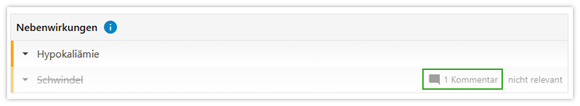 Kommentarhinweis in der Überschriftenzeile von Checkergebnissen