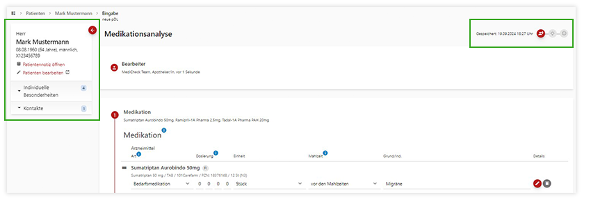 Farbliche Kennzeichnung des Bearbeitungsstatus von Medikationsanalysen in der Patientenübersicht