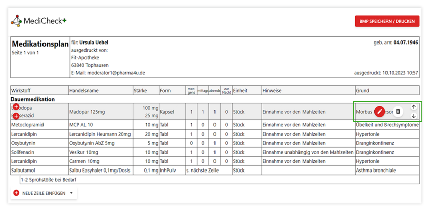 Ab sofort haben Sie die Möglichkeit, den Medikationsplan einschließlich der im BMP-Manager vorgenommenen Ergänzungen und Änderungen im MediCheck zu speichern.